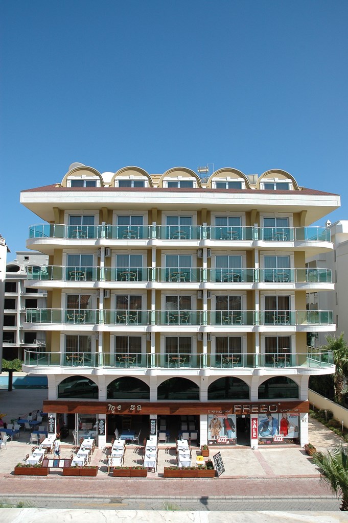 Oda Kahvaltı ve Yarım pansiyon konseptinde hizmet veren tesis zengin kahvaltısı ve akşam yemekleri ile lezzetli bir tatil sizleri bekliyor. Plaja 100m. mesafe konumlanan tesis halk plajını kullanmaktadır. Ayrıca açık yüzme havuzu ve çocuk havuzu ile mükemmel bir tatil sizleri bekliyor.